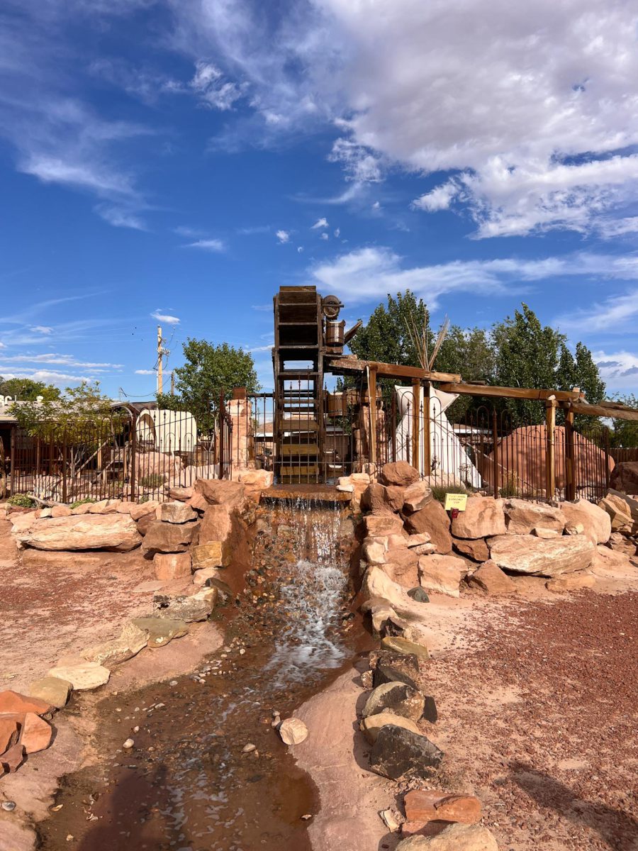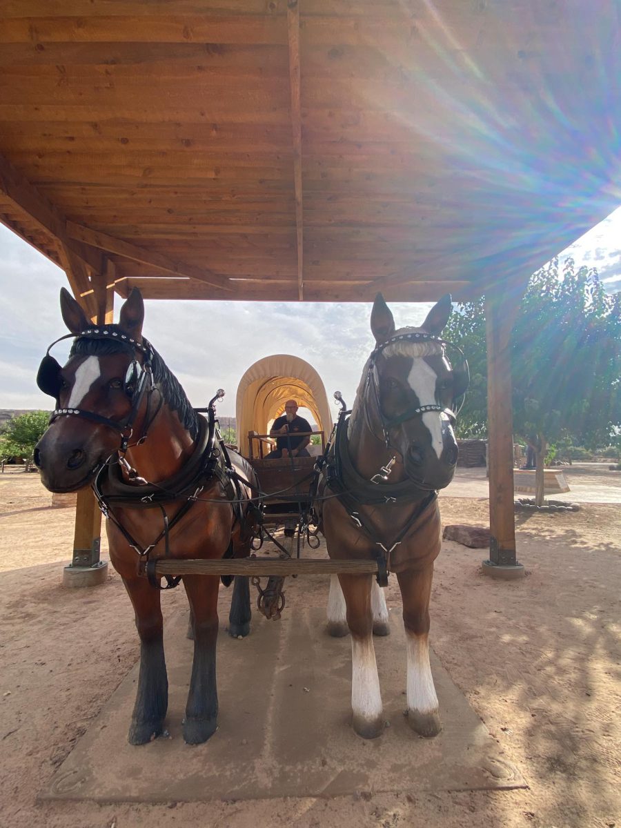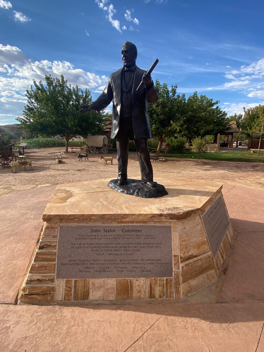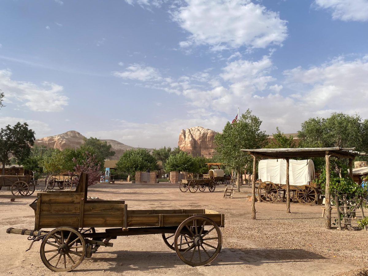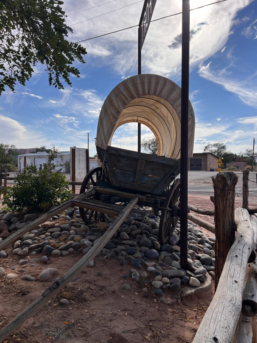 Da wir abends in Bluff nichts mehr essen konnten, haben wir dann in Kayenta noch etwas zu essen eingekauft. Auf dem Hinweg haben wir das Historische Fort Bluff gesehen. Dort haben wir auf dem Rückweg dann Halt gemacht. Als wir dort ankamen, entdeckten wir, dass es sich wohl nicht um einen militärischen Standpunkt gehandelt hatte, sondern eine zivile Siedlung. Wir wurden sofort freundlich empfangen und in das Information Center geführt. Dort schauten wir uns einen liebevoll erstellten Film über die Entstehung von Bluff an, dass 1880 gegründet wurde. Ca. 60 Siedler fuhren mit Planwagen durch das Land, 6 Monate lang. Sie bahnten sich Wege durch die Wüste, sprengten Wege in die Berge und bauten eine Brücke aus Steinen, um den Colorado zu überqueren. Sie hatten keine größeren Katastrophen und keine Verluste auf dem Weg zu verzeichnen und es wurden auf dem Treck 2 Babys geboren.