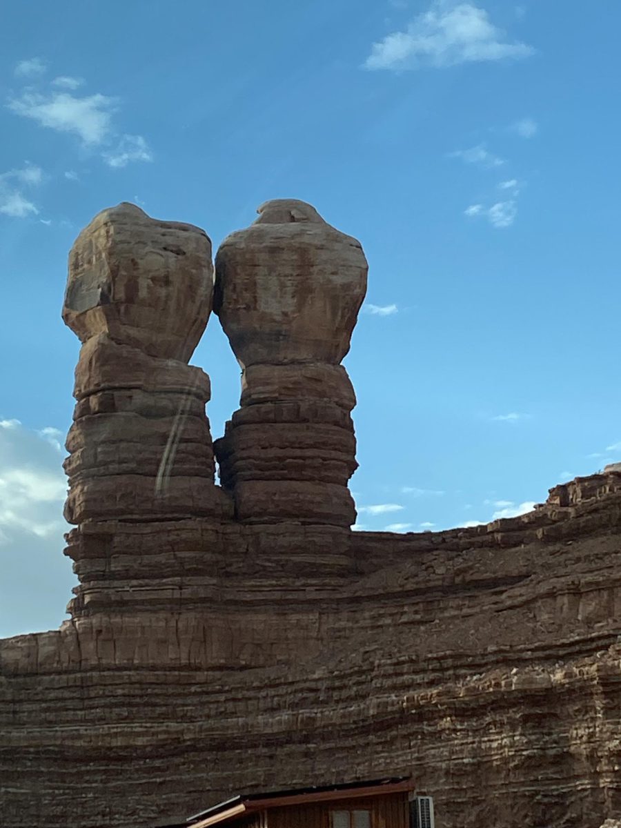 Wir machten uns heute früh nach dem Frühstück auf, um nach Bluff zu fahren. Also fuhren wir von Arizona wieder zurück nach Utah. Der Wechsel der Vegetation war erstaunlich. Steppenwüste, Wälder, hohe Berge und man konnte bis zu 50 Kilometer weit schauen. Immer weiter fuhren wir in die Einöde von Utah. Am Hotel angekommen, erwarteten wir das Schlimmste. Bluff war wirklich ein kleines Dorf im Nirgendwo. Als wir in die Strasse zum Hotel einbogen, sahen zwei küssende Felsen als Eingangs“Wächter“. Ich war total entzückt – das war ja ein gutes Zeichen. Als wir eingecheckt haben, bezogen wir unsere Zimmer – und waren augenblicklich begeistert! Wunderschön eingerichtete Zimmer mit Eismaschine, Kühlschrank, Kaffeemaschine und Mikrowelle. Ein Ort, an dem man sich echt wohl fühlen kann.