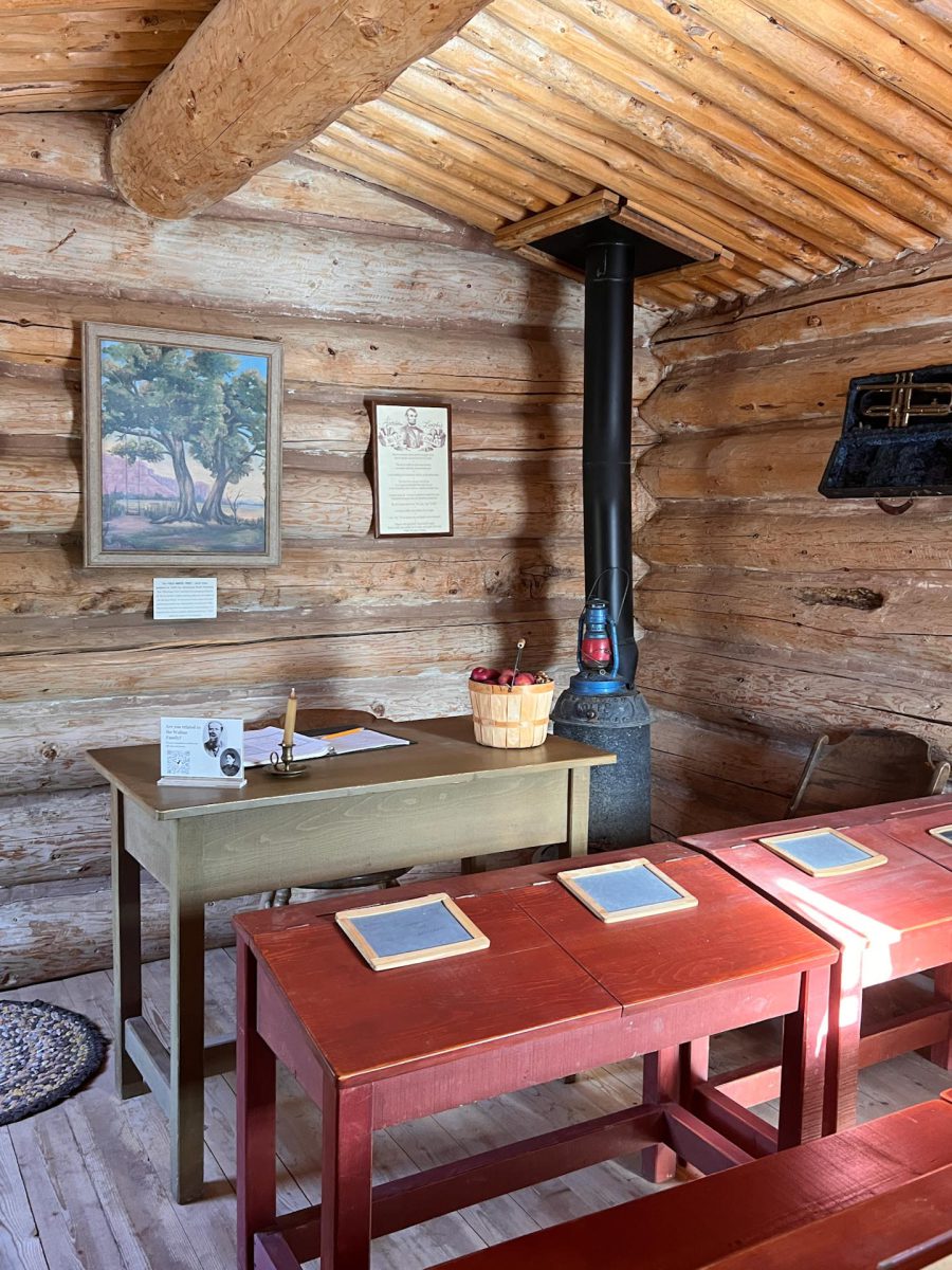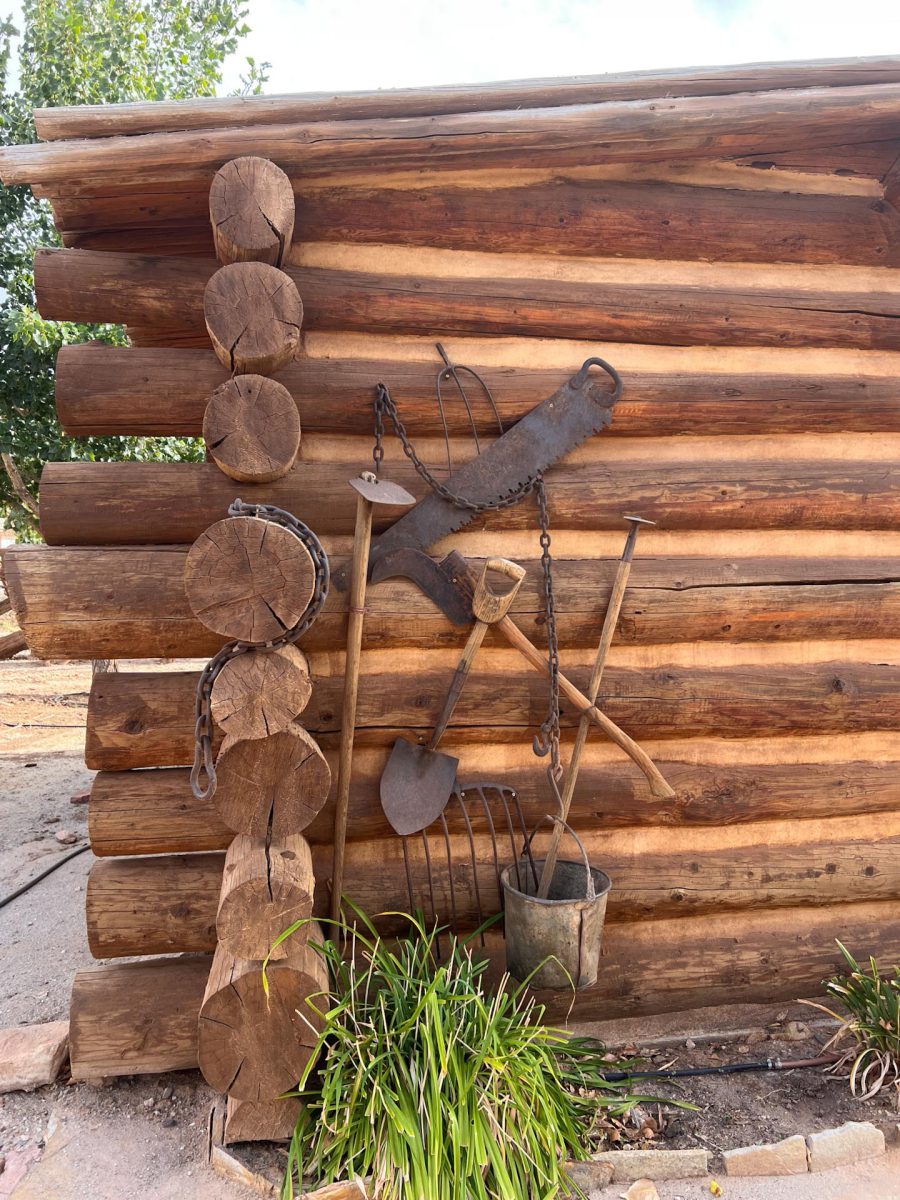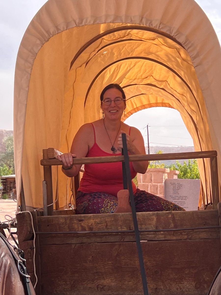 Nach diesem eindrucksvollen Film besichtigten wir das Fort. Holzhäuser waren aufgebaut, die liebevoll eingerichtet waren, einzelnen Familien zugeordnet. In den Häusern hingen Bilder von den betreffenden Personen und andere Stücke, die die Nachfahren der Siedler zur Verfügung gestellt hatten. Es sah aus, als wären sie gerade noch da gewesen. Einer der Info-Guides machte mich darauf aufmerksam, dass ein Deutscher die Pferdewagen zur Verfügung gestellt hatte, die jetzt die Wagen der Siedler darstellten. Es gab auch ein Tipi der Ute Indianer, eine Lehmhütte der Navajo Indianer; außerdem noch eine Schmiede, eine kleine Darstellung einer Goldwaschanlage, und vieles mehr. Es war wirklich toll. Einer der Info-Guides, mit denen wir sprachen, war sogar ein direkter Nachfahre, ein Urururenkel. Echt toll!