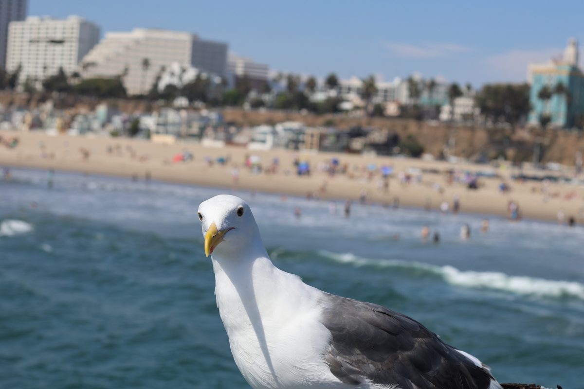 Danach fuhren wir zum Santa Monica Pier. Wir wurden auf einen Parkplatz geleitet, der 40.-$ kostete! Los Angeles zieht uns tatsächlich buchstäblich das Geld aus der Tasche. Wow! Wir spazierten über den Pier, auf dem viele Besucher, einige Kleinkünstler ( Breakdancer, Sänger, Maler (Name auf Reiskorn) und viele Souvenierhändler waren. Es war total schön – unter uns der Strand, an dem wieder viele Familien ihre freie Zeit genossen und auf dem Pier das pralle, laute und fröhliche Leben. Wir posierten noch am Ende der Route 66, das von einem Schild markiert wurde und genossen die Atmosphäre und das Geräusch des Ozeans, der gegen den Pier schlug. Das Wasser war grandios – es ist schon etwas anderes als ein kleines Meer oder ein ein großer See….. das spürt man deutlich.