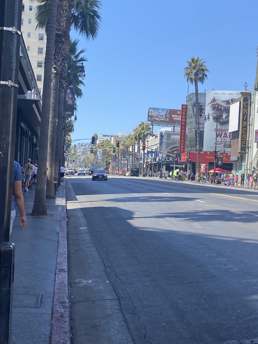 Unser Ziel war das Hollywood Sign. Dafür sind wir quer durch LA durch Hollywood gefahren, an den Filmstudios vorbei zum Hollywood Sign View. Dort angekommen haben wir direkt mal eine Familie aus Glückstadt getroffen. Wir haben uns sehr nett unterhalten und Ulli hat schöne Bilder vom Schriftzug und auch von der Hollywood Bowl gemacht. Danach wollten wir noch zum Griffith Observatory, das aber leider montags geschlossen hat. Wir haben uns quer durch die Berge über kleine Straßen gezwängt und sind dann zum Hollywood Blvd gefahren.