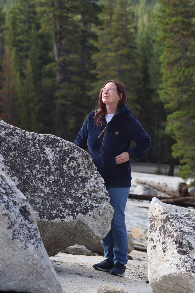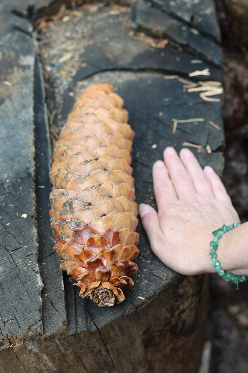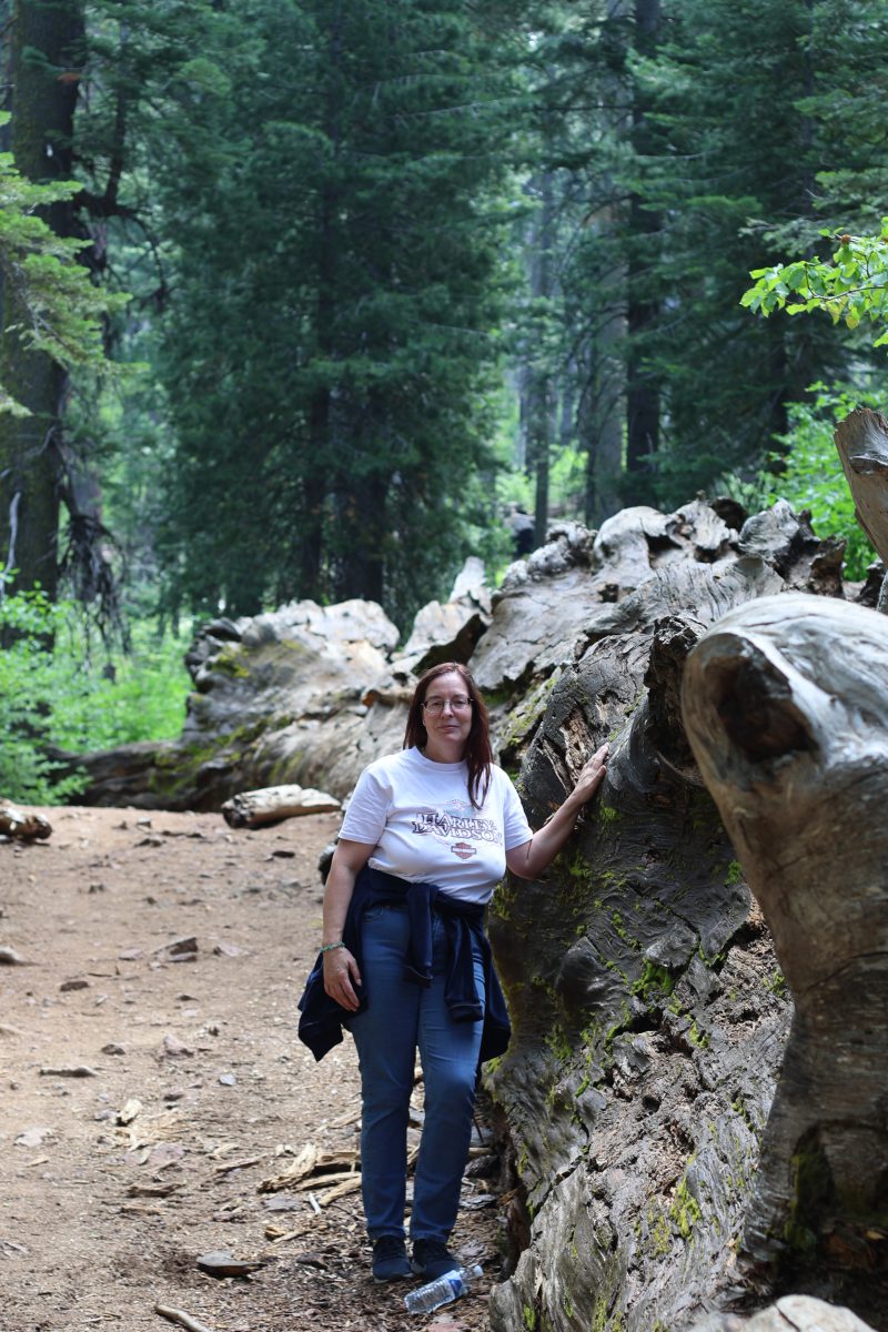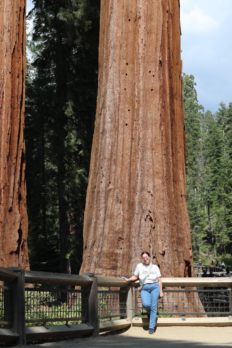 Anton und Sophie spazierten schon vorweg und wir kamen langsam hinterher. An dem ersten Sequoia Baum holten wir sie ein. Er war riesig! Ein beeindruckender Baum, der bis in den Himmel wuchs. Wir gingen weiter und kamen an den umgestürzten Sequoia Baum. Dieser Baumriese war aber trotzdem nicht tot, sondern brummte vor Leben. Kleine Insekten und Holzwürmer ernährten sich von ihm, kleinere Tiere wie Streifenhörnchen fanden Schutz im hohlen Baum und es gab viele weitere Spuren. So erschafft eben das Ende des Lebens neues Leben.