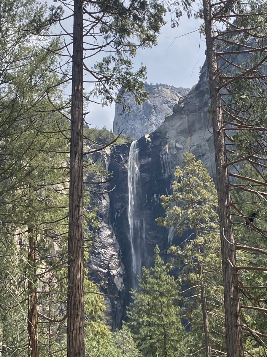 Weiter ging es dann am Bridalvail Fall vorbei. Ein wunderschöner Wasserfall, der sich über viele Meter und in Tiefe stürzt. Der letzte Halt war dann der Mariposa Grove. Wir hatten alle nicht mehr so große Lust, zu laufen. Daher waren wir sehr dankbar für den Shuttlebus, der uns vom Welcome Center in den Grove brachte. Die Busfahrerin erzählte auf der Fahrt, dass es vor drei Jahren einen schweren Waldbrand gegeben habe und dass die Guardians – die riesigen Sequoiabäume schlimmeres verhindert und das Feuer aufgehalten haben. Wir haben vor dem Grove noch einen Baum gesehen, der eine große schwarze Wunde am Stamm aufwies, aber trotzdem lebte und grün und hoch im Wald stand.